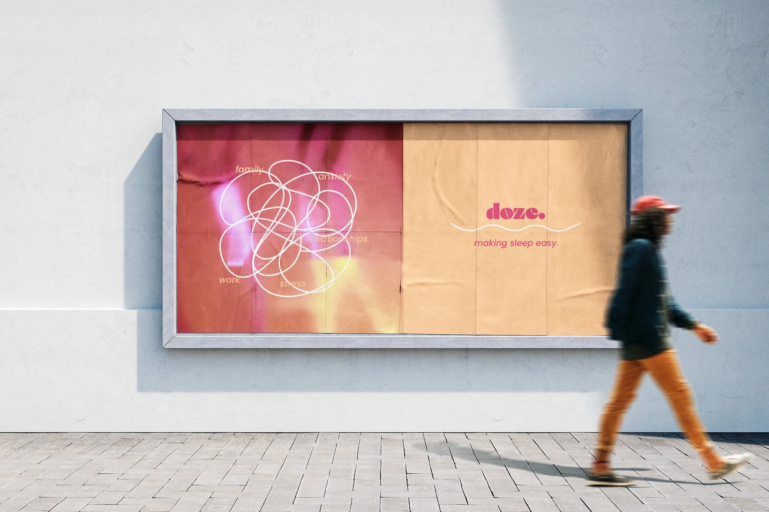 This brief was set by Born Ugly, and was all about Selling the Unsellable. My concept was to sell the idea of sleep with my product Doze. Doze is an in-ear device that soothes busy brainwaves into a calm wave of sleep.